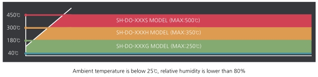 | Temp Range | Ambient +10℃ to 250℃ (Ambient +18℉ to 482℉) |