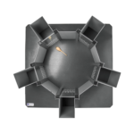 - Consists of a 50x50cm grey base. 5 cubicles, and 5 blank walls that are positioned to enclose a central square, with a cross diameter of 34 cm. The 5 cubicles are sized 13×11.5cm.
