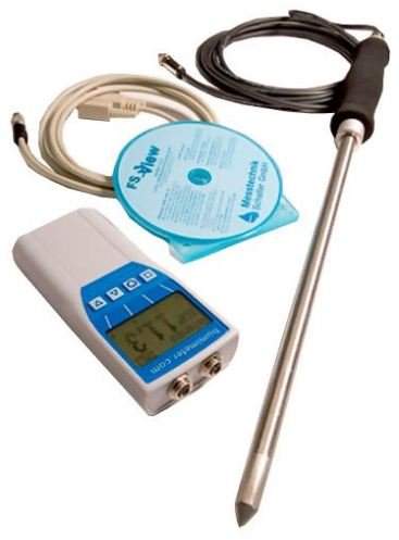 The humimeter RH2 handheld thermo- hygrometer measures relative humidity, absolute humidity, dew point, equilibrium moisture content, aw-value, CO2 concentration (ppm) and temperature.