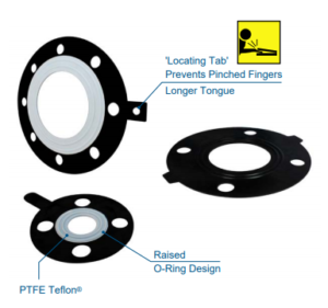 - Low Flange Bolt Torques Required for Positive Seal – Due to the Molded Raised Face – Patented double convex